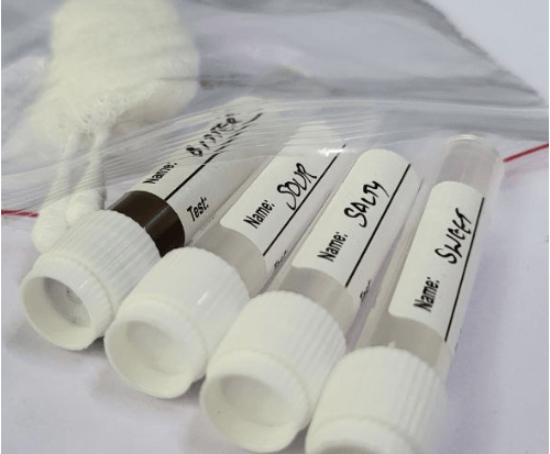 "Taste testing? Done for you! Our preloaded sweet, salt, sour, and bitter synthetic solutions last a year, so no messy prep or last-minute cooking. With tongue holding gauze and buds included, just open the pack and enter your exams—because we’ve already done the hard part!"
